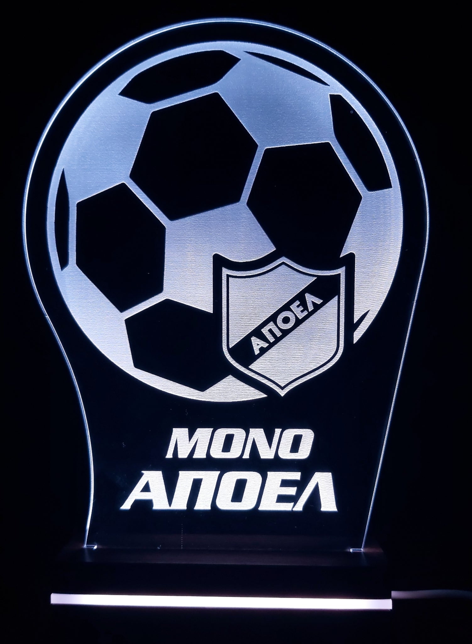 Led lighting made of acrylic, with a soccer ball engraving and the shield of APOEL.