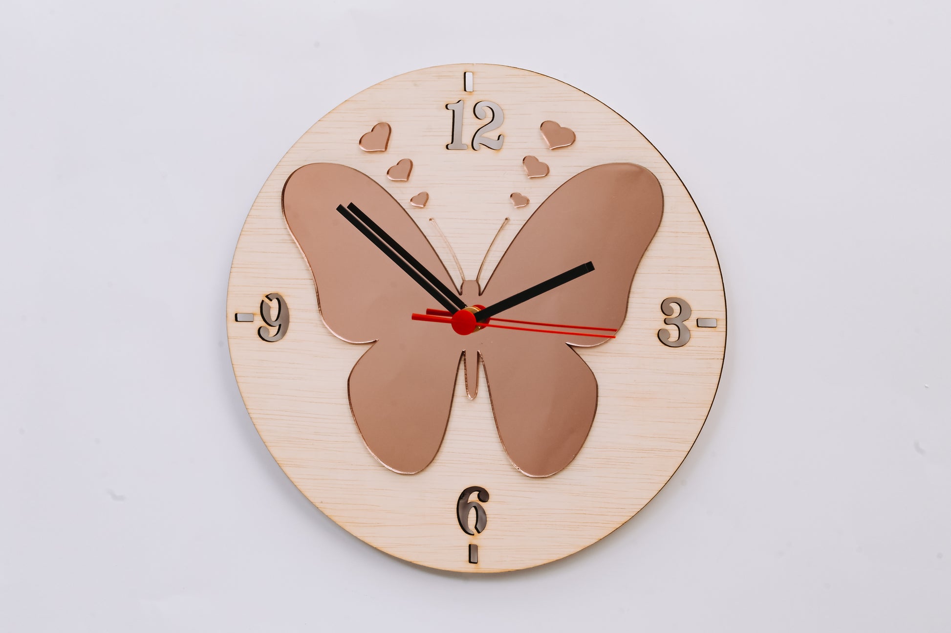 "Butterfly with hearts" wall clock for the decoration of your children's room in a unique way!