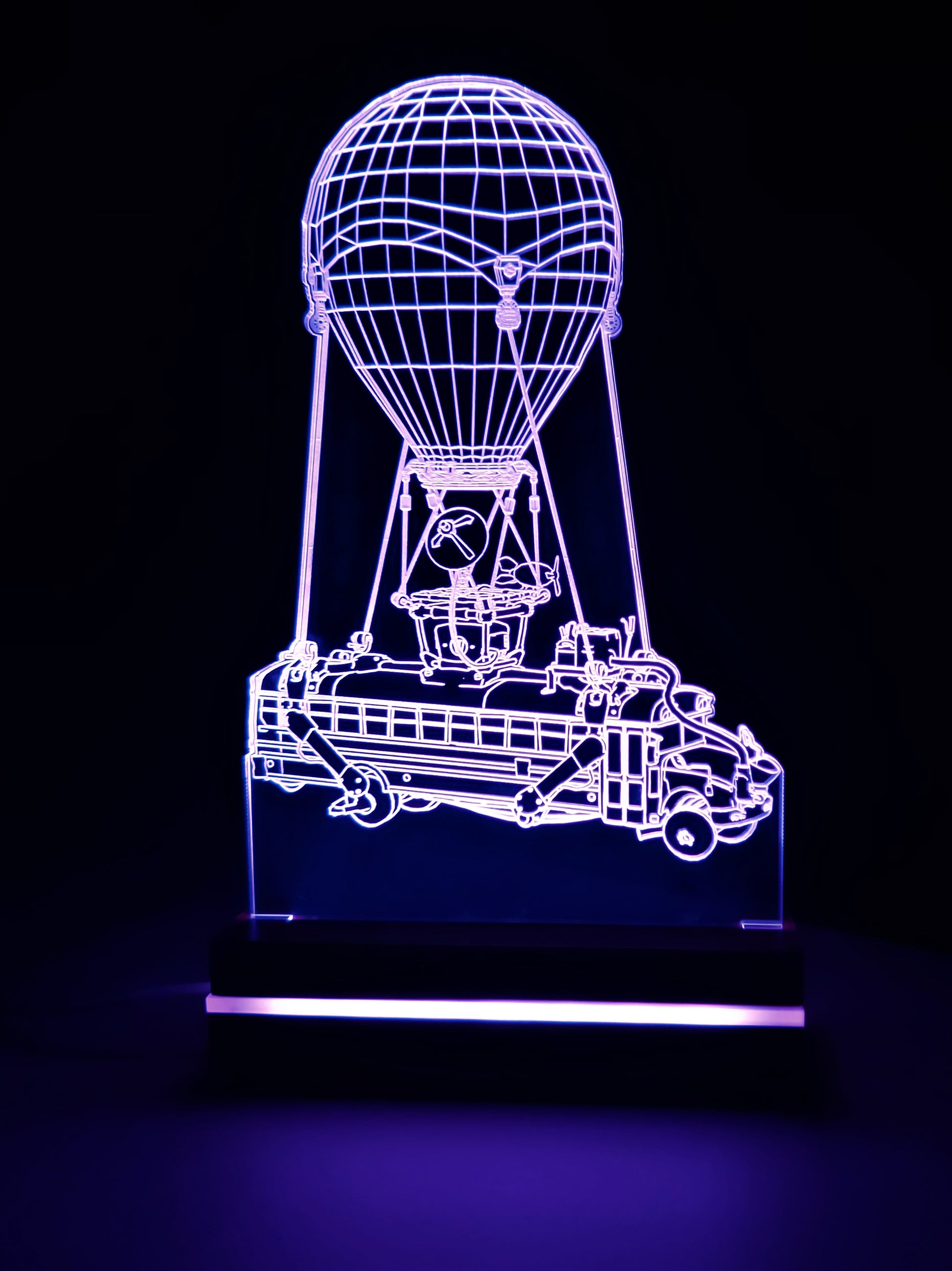 It is accompanied by a wooden handmade base with LED 7 RGB lights, fading and flashing light mode.