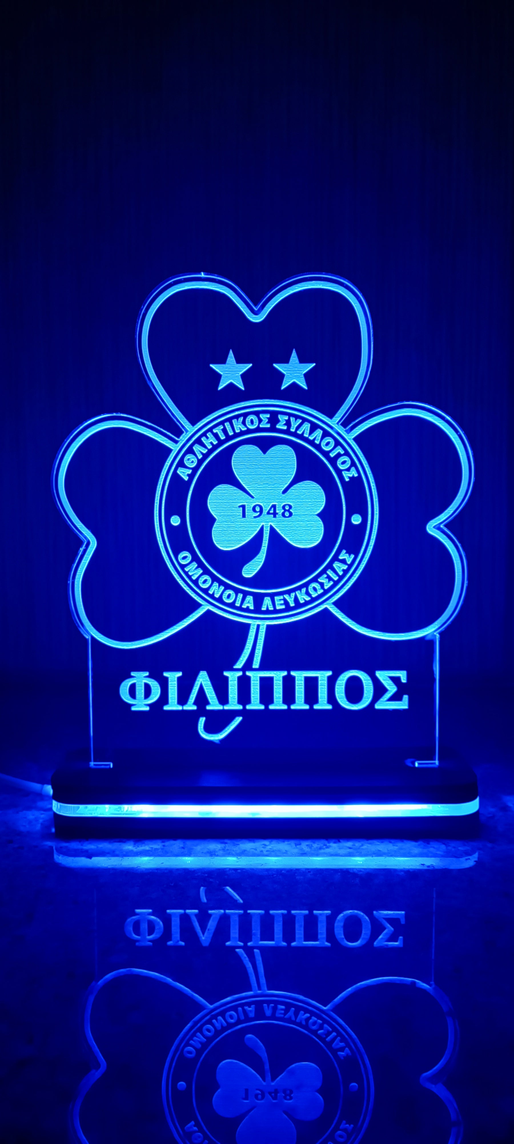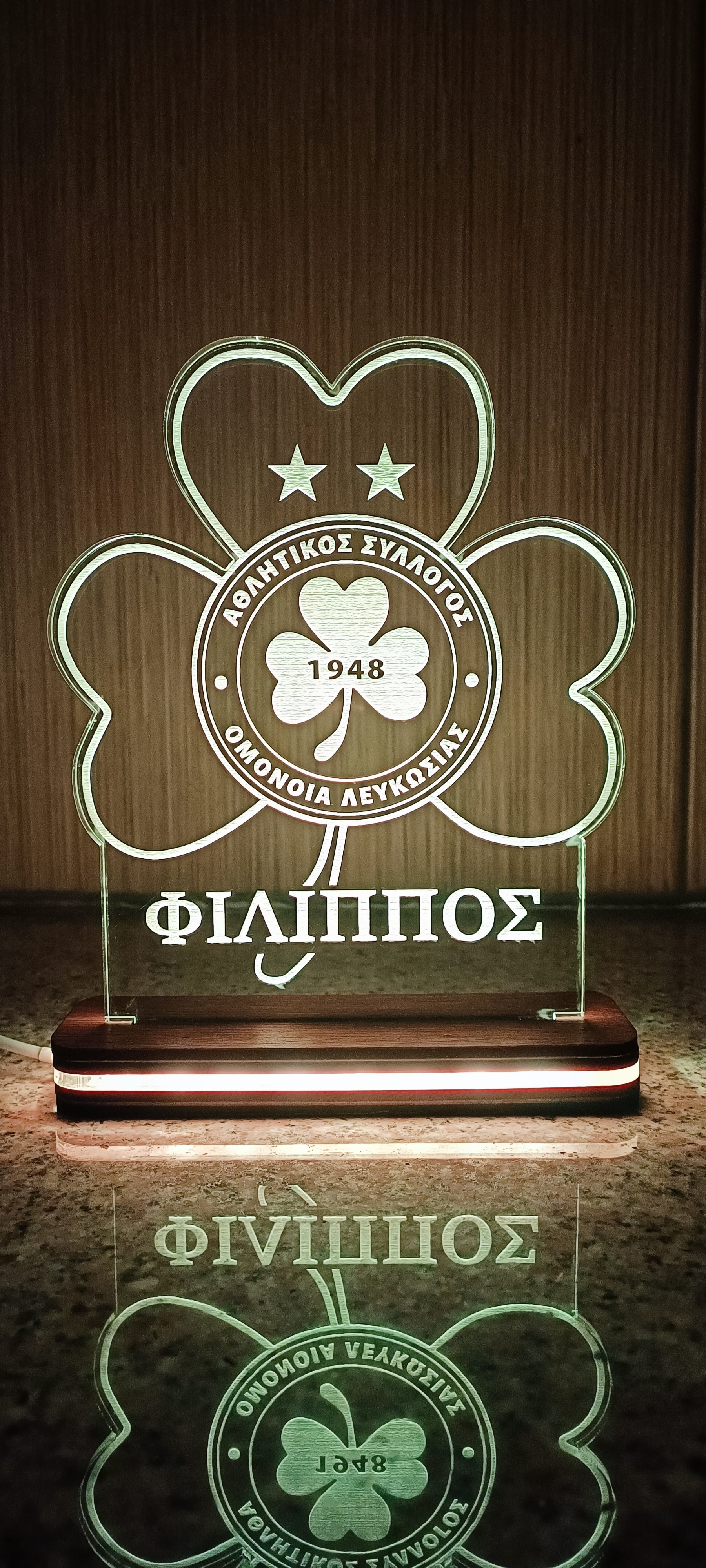 It is accompanied by a wooden handmade base with LED 7 RGB lights, fading and flashing light mode.
