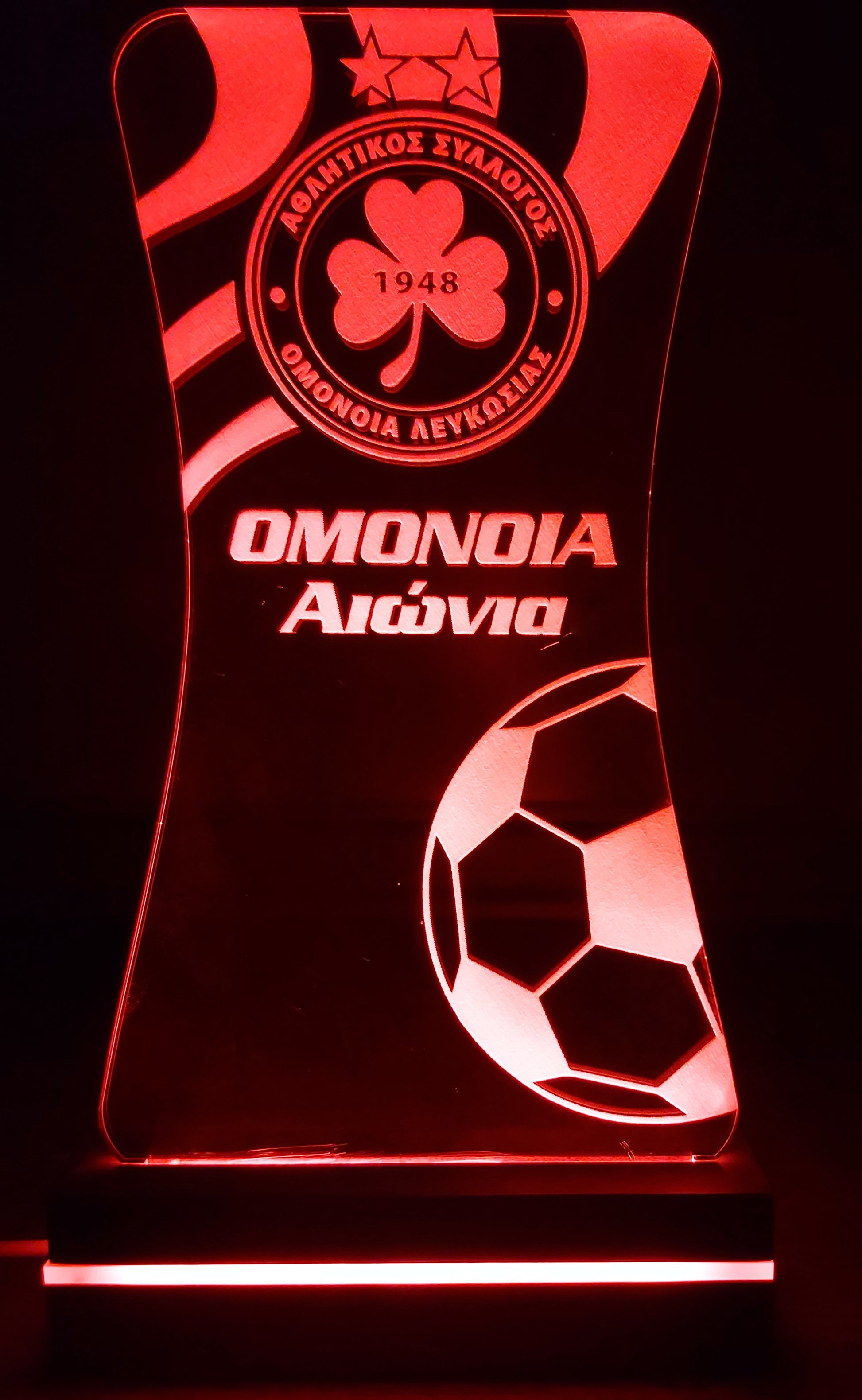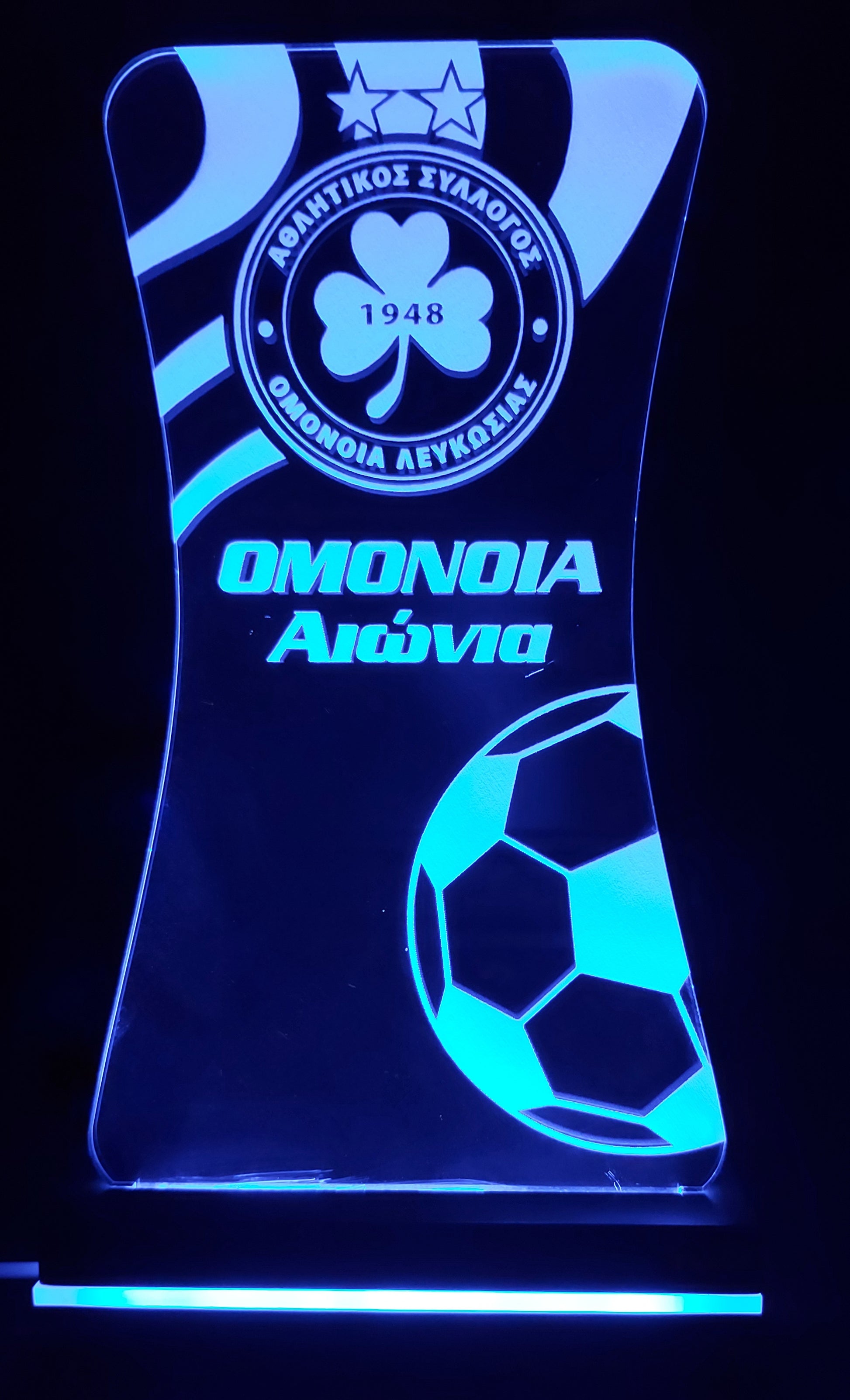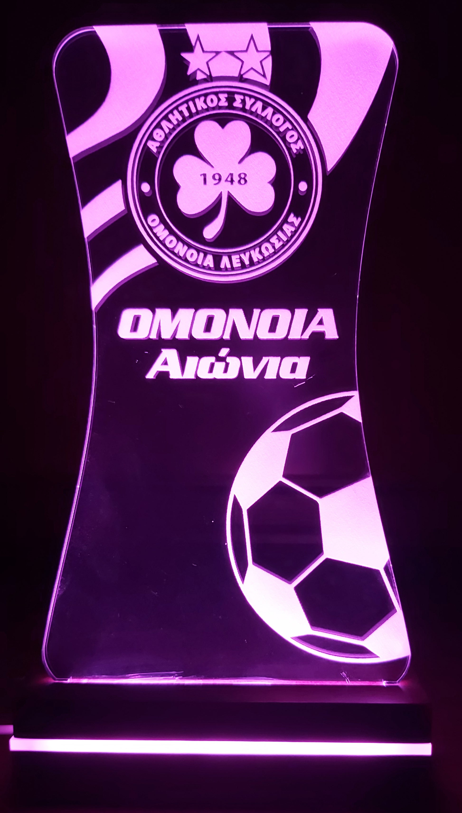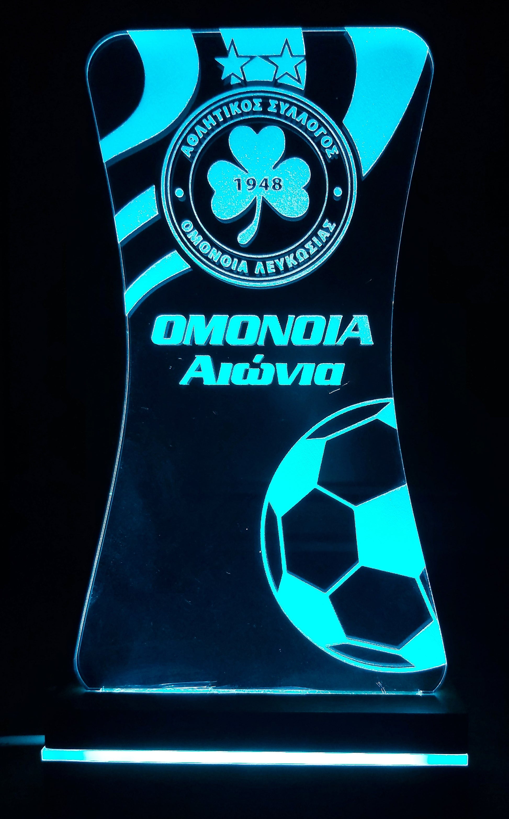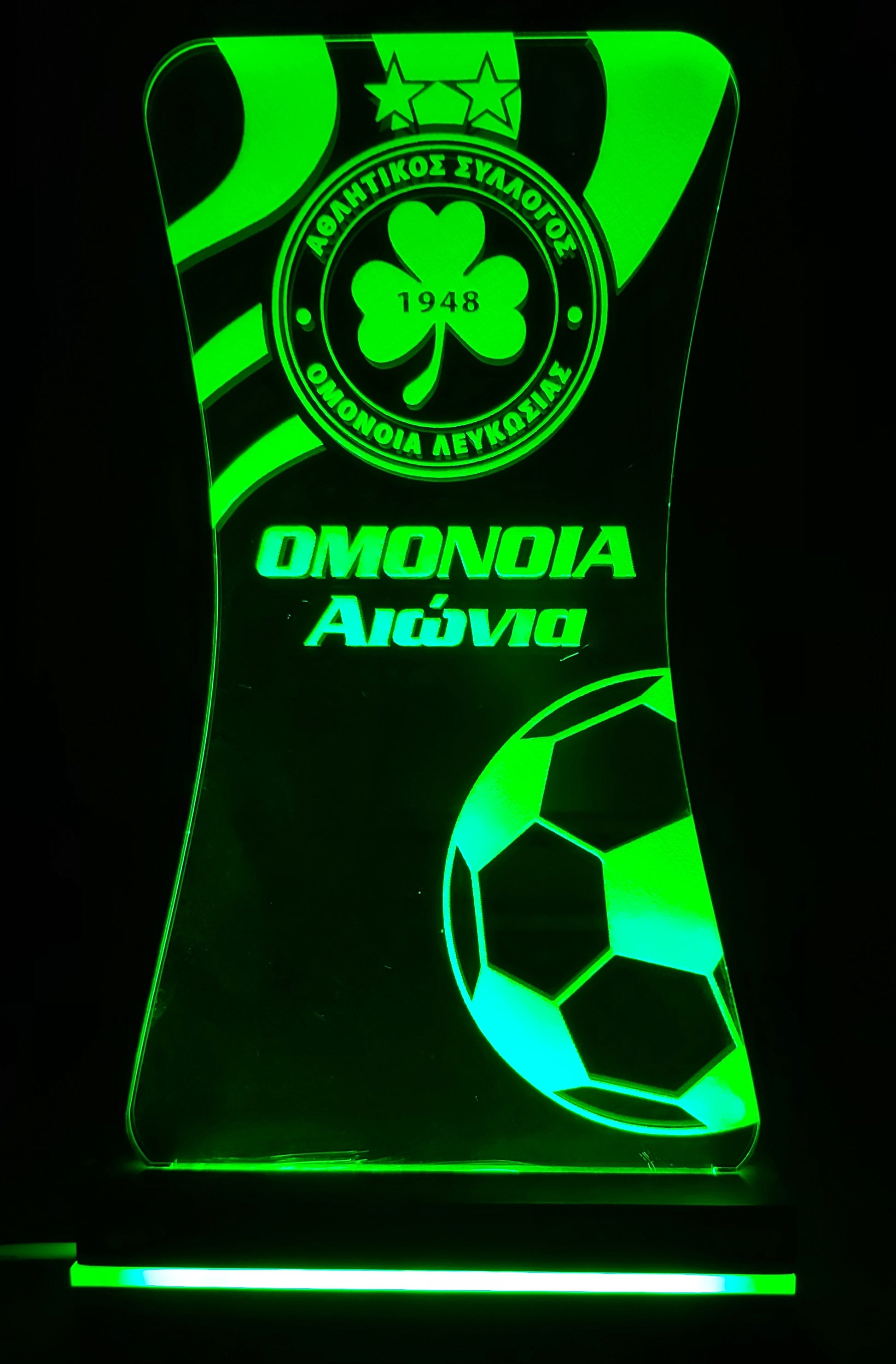 Led lighting made of acrylic, with a soccer ball engraving and the shield of OMONOIA.
